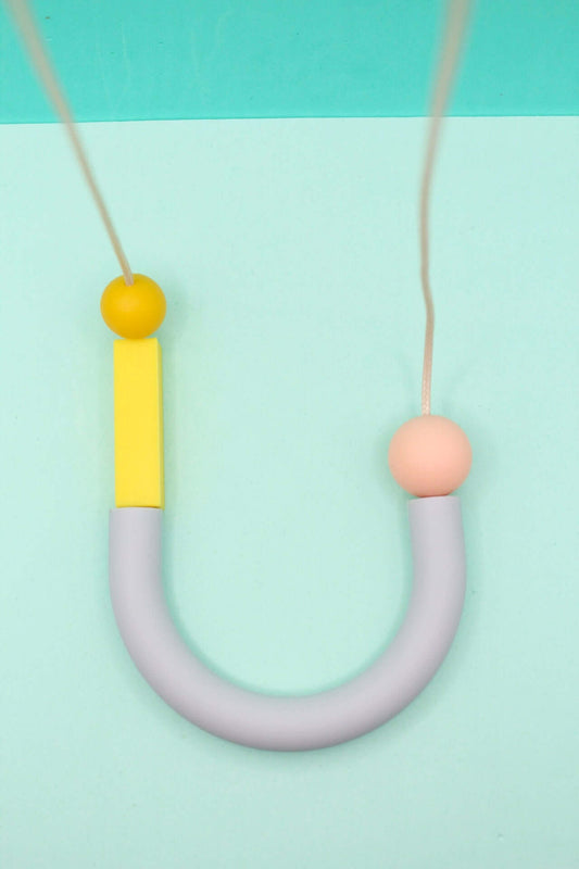 Asymmetrical Dove Grey U Shape Silicone Necklace | Lightweight and Chewable