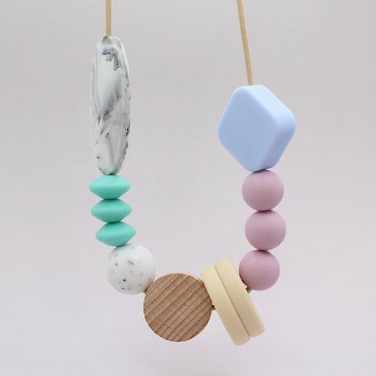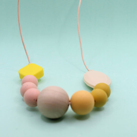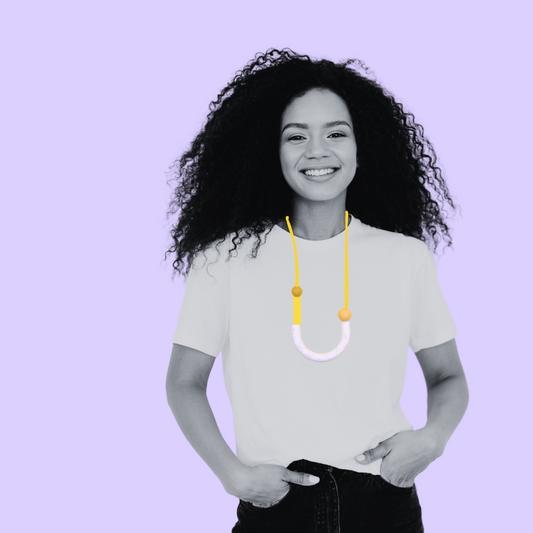 Explore the Mustard & Mint collection of silicone necklaces. Design-led, contemporary, safe and tactile jewellery. Ideal for ADHD/Autism and baby friendly use by caregivers as teething and feeding support.