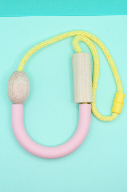 Pink Silicone U Tube necklace on 5mm Macrame Cord | Chunky Wooden Beads