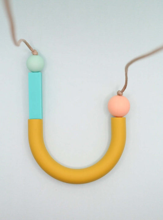 Asymmetrical Mustard U Shape Silicone Necklace | Lightweight and Chewable