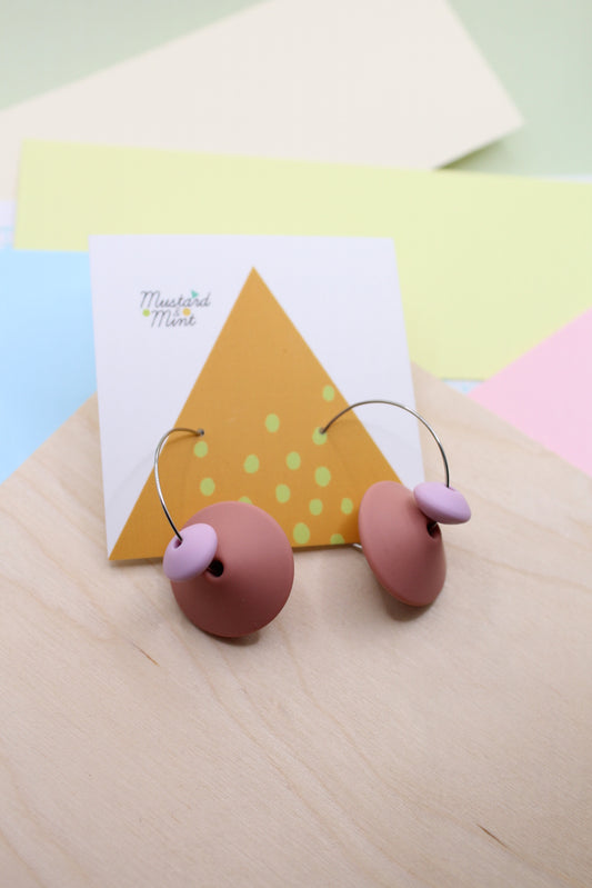 Statement Silicone Hoop Dusty Pink Dangle Earrings | 30mm Hoops