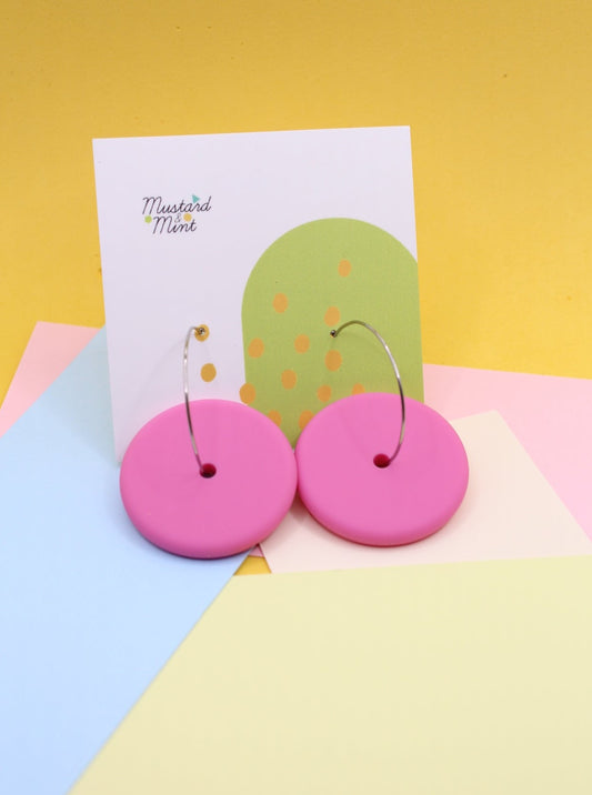 Statement Silicone Hoop Dangle Earrings | Flamingo Pink | 30mm Hoops