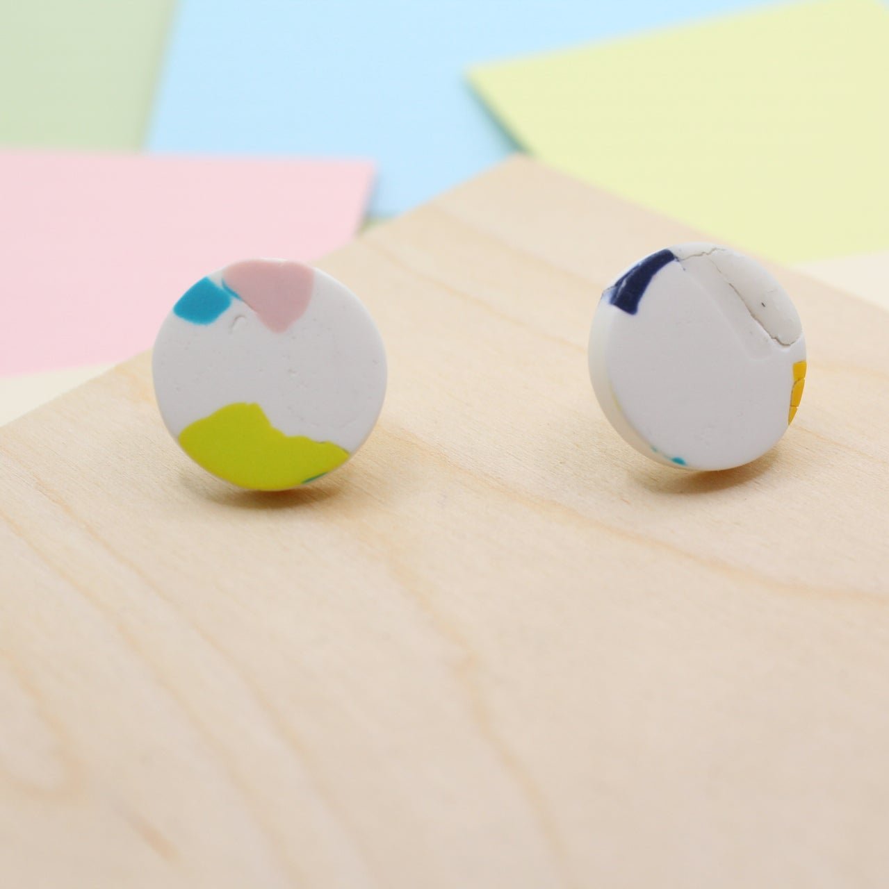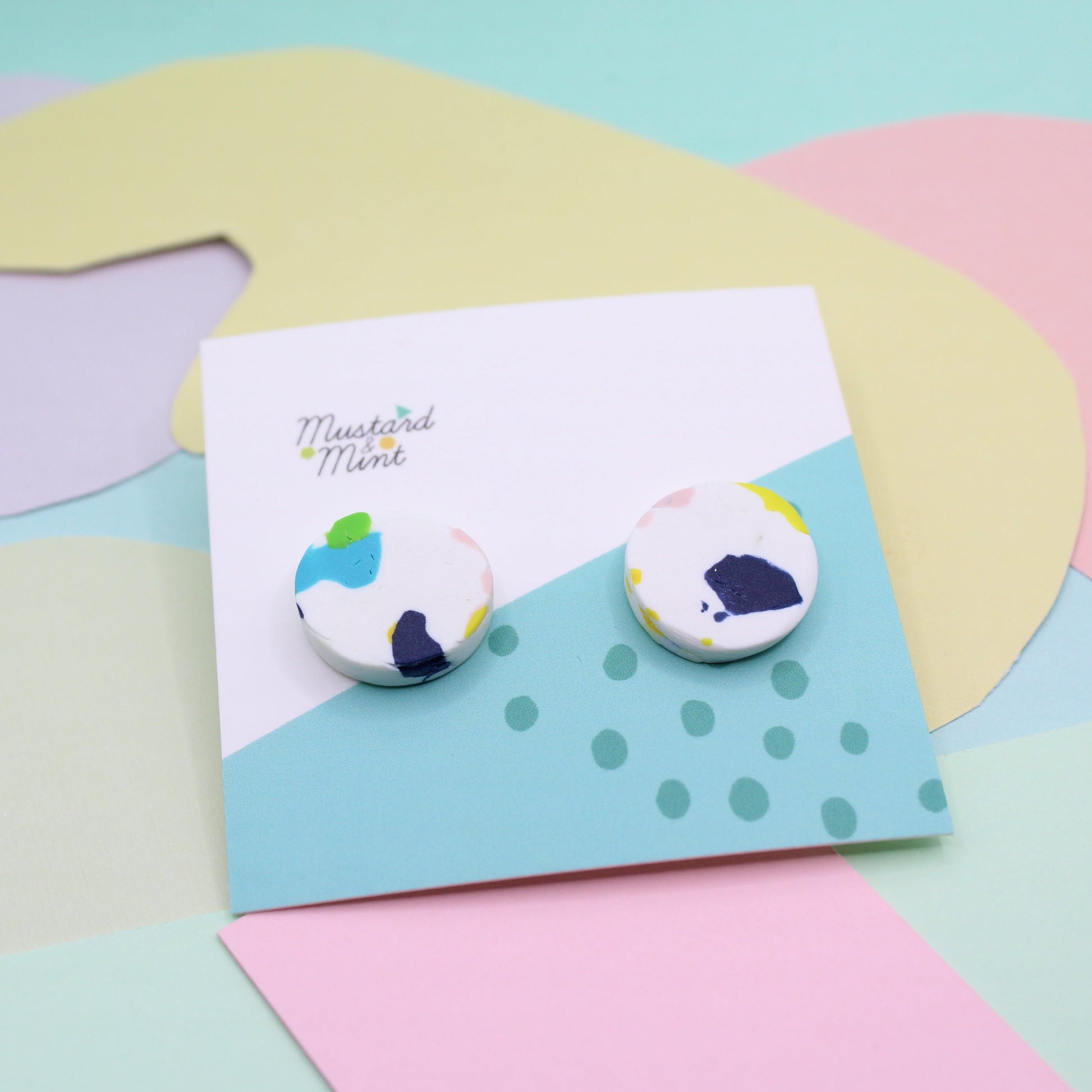 Chunky Polymer Studs - Terrazzo Effect Organic round shape | Lightweight